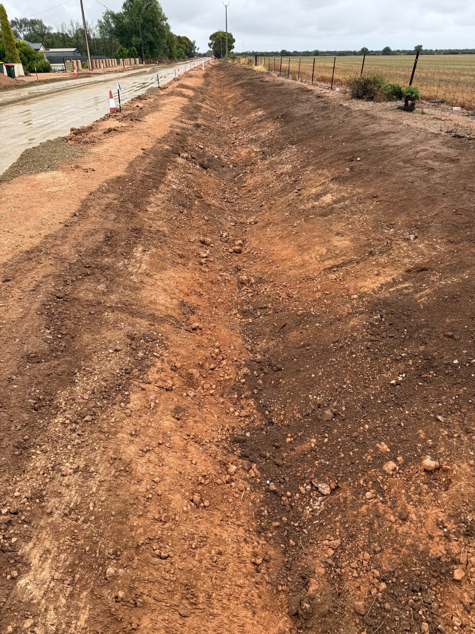 Excavation of the swale drain along the northern side of the road has now commenced. This drainage component is a key element of the project and will improve stormwater management and road longevity in the area.