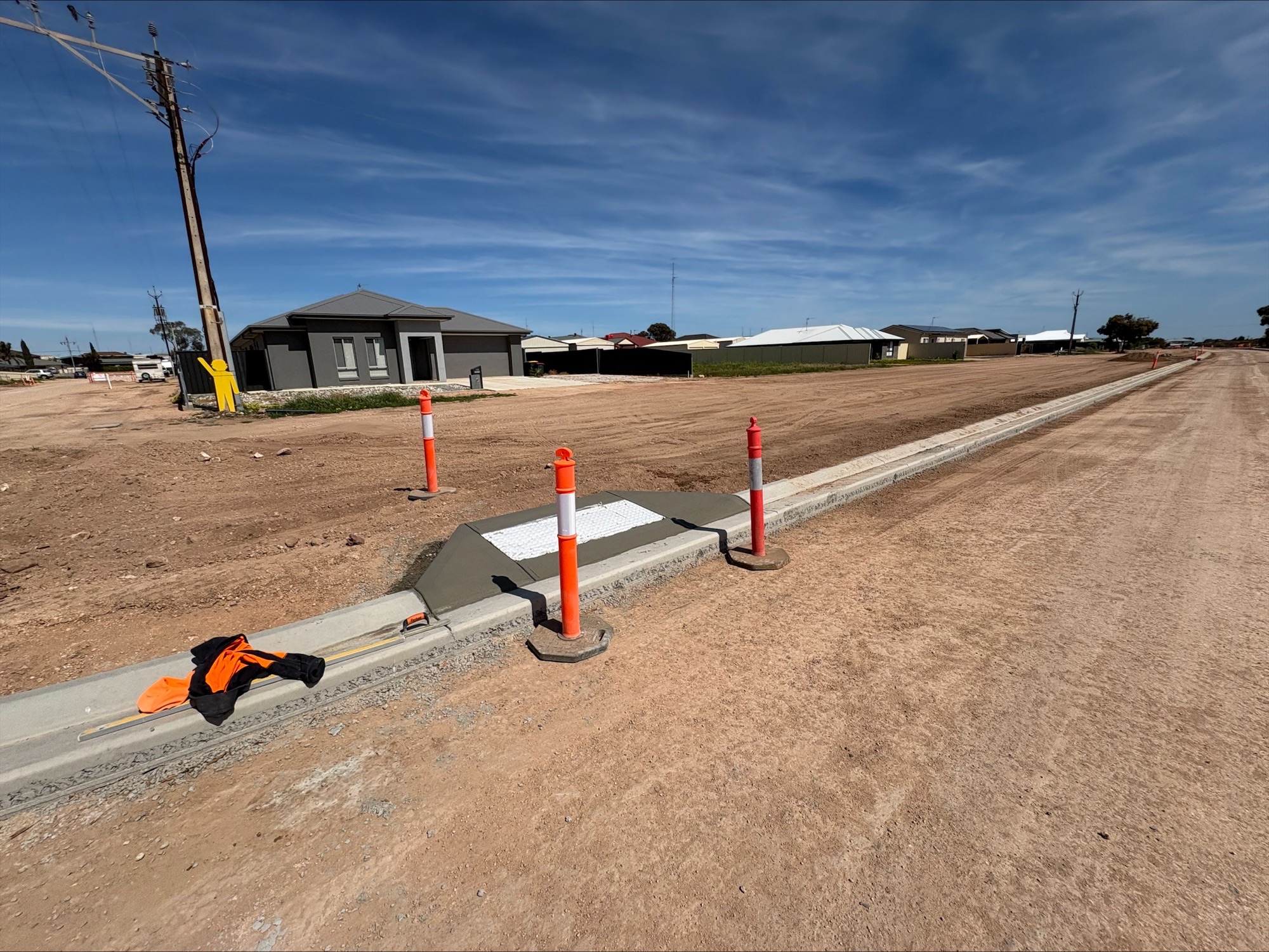 The project has progressed significantly, with the installation of kerbing now complete, helping to clearly define road and parking boundaries while improving site drainage. Pram ramps have also been installed, enhancing accessibility and ensuring compliance with disability access standards for pedestrians, prams, and mobility devices. In addition, the stormwater system has been fully installed, providing improved drainage infrastructure to manage runoff effectively and reduce the risk of flooding or water pooling on site.